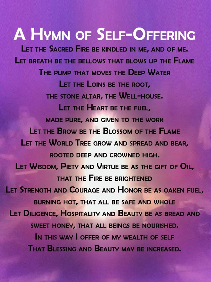 A Hymn of Self Offering Let the sacred fire be kindled in me, and of me. Let breath be the bellows that blows up the flame The pump that moves the deep water Let the loins be the root The stone altar, the well-house. Let the Heart be the fuel, Made pure, and given to the workpic.twitter.com/uxTmaNqejr
