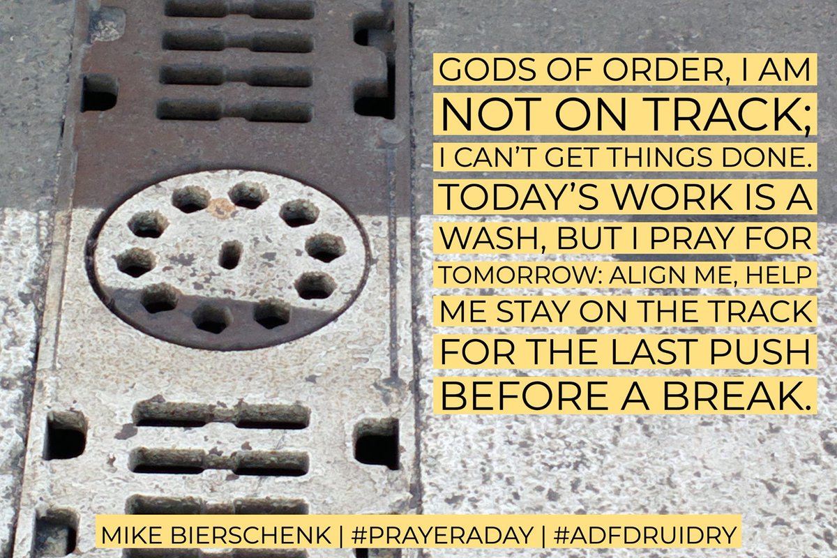 Gods of Order, I am Not on track; I can't get things done. Today's work is a wash, but I pray for tomorrow: Align me, help me stay on the track for the last push before a break. - Mike Bierschenk -pic.twitter.com/Q7TzDVSKbc