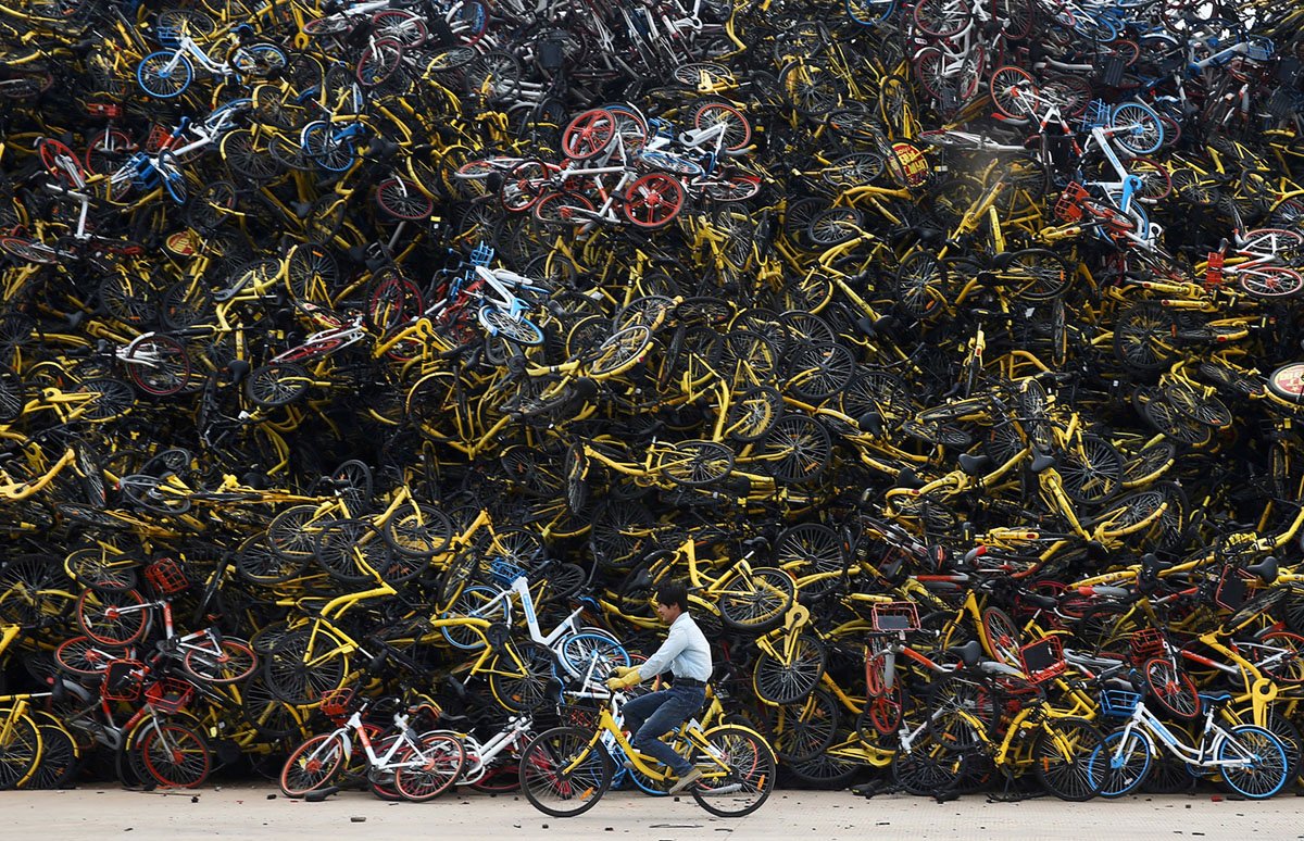 Images of speculation gone wild: piles of bicycle debris left behind after China's bike-sharing bubble bursts, from