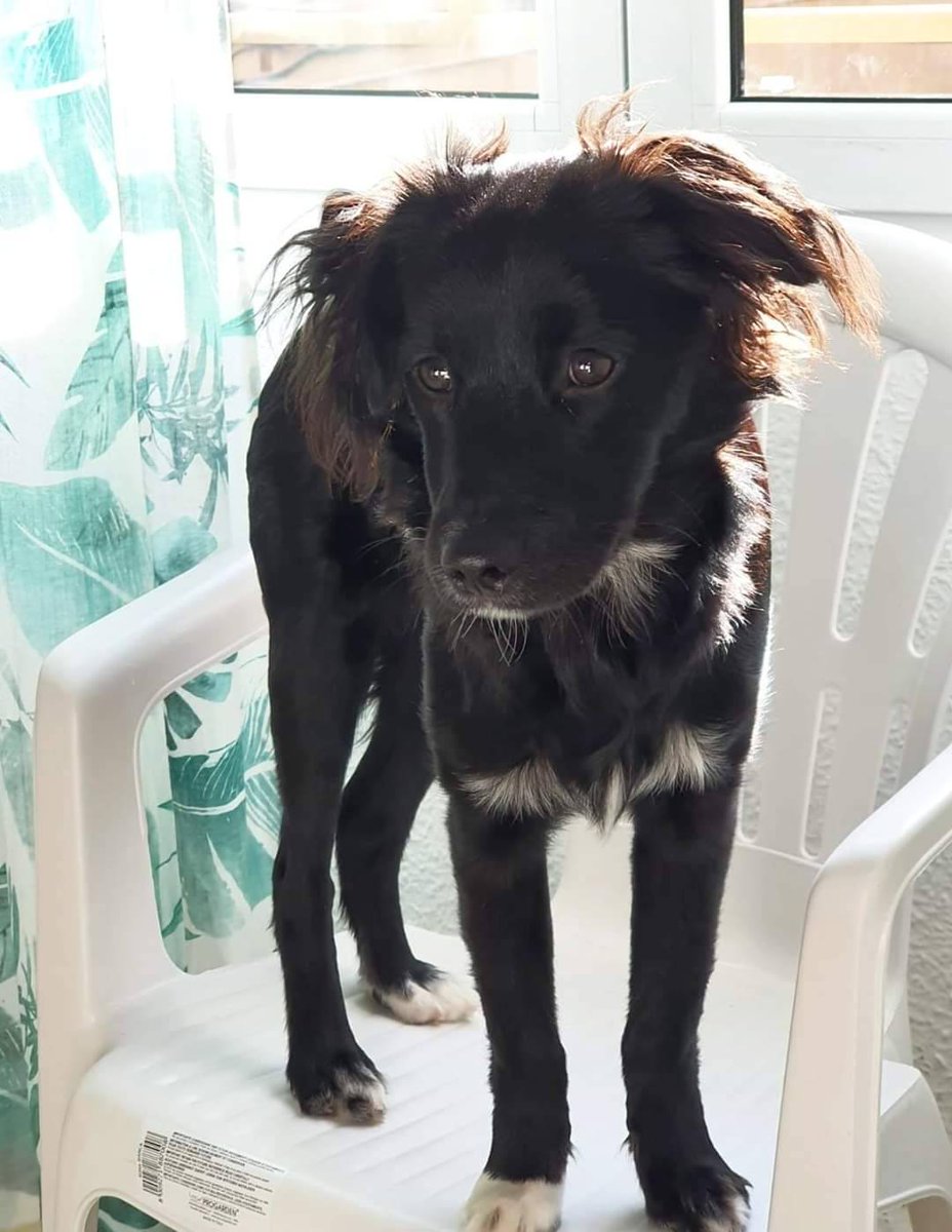 Tiene un año, no tiene ningún miedo, muy cariñoso y divertido. Es sociable con otros perros, compatible con gatos y paciente con los niños. Goza de gran energía, pero en casa es tranquilo y educado.