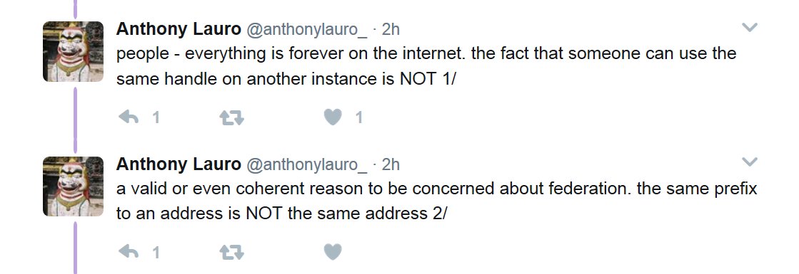 Look, federation is neat as hell. It's what email uses. But email has had nearly FIFTY YEARS to work out bugs, & it's still kinda fucked up.