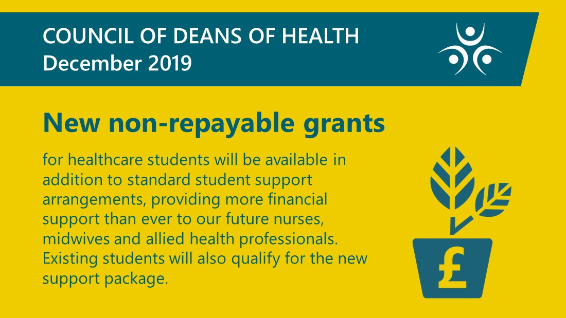 From the Government's announcement today: 'The funding will be given to all new and continuing degree-level nursing, midwifery and many allied health students from September 2020' https://www.gov.uk/government/news/nursing-students-to-receive-5-000-payment-a-year …pic.twitter.com/ArwjbvuNwT