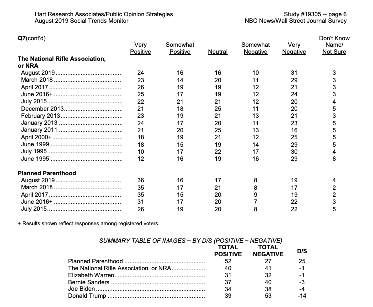And here's a hastily made chart of NBC/WSJ's NRA polling, which now has opinions on the group at about break-even, down from net +12 in 2017 https://assets.documentcloud.org/documents/6297116/NBCWSJ-August-2019-Poll.pdf …pic.twitter.com/jCmnIOl0p3