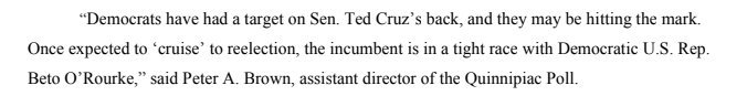 An 8-10 point margin would've been more believable than a 3 point shown by the poll. QPac has been a historically pro-Dem poll and during a Dem wave their leanings have sometimes come true. But this poll just 1 month after primaries seems like a total farce to get Beto donations.
