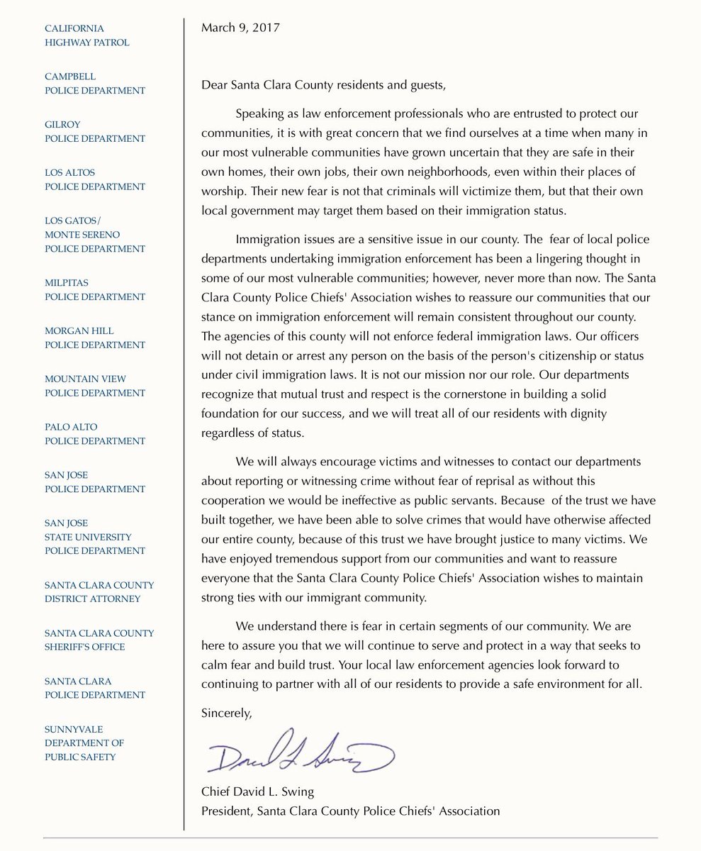Copy of Santa Clara County Police Chiefs' Association's open letter to
