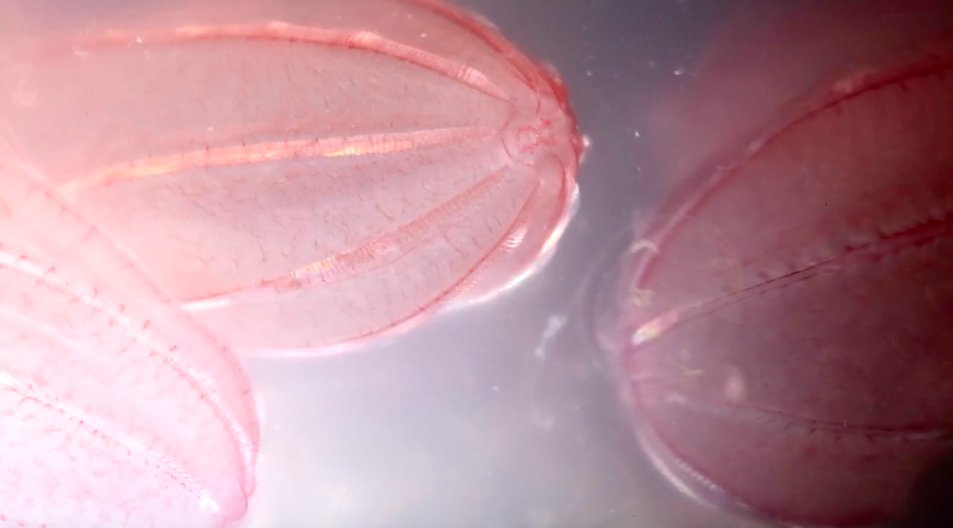 As translucent ctenophores propel themselves along, their fused cilia diffract the light into a rainbow, giving them an ethereal glow. Aeon Video: http://ow.ly/E1gM30kgmtm pic.twitter.com/2PbHnYiRiJ