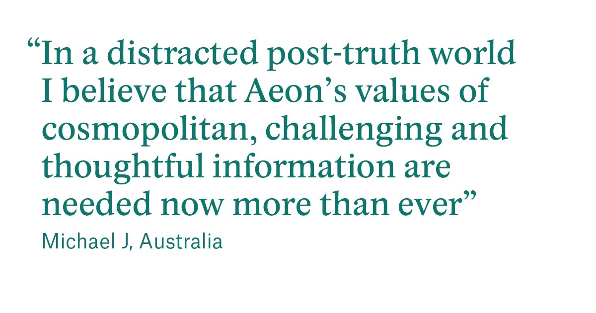This year Aeon reached millions more people around the world with our mission to spread knowledge. Here’s what our Friends are saying: http://aeon.co/donate pic.twitter.com/hhL5EwgEWy