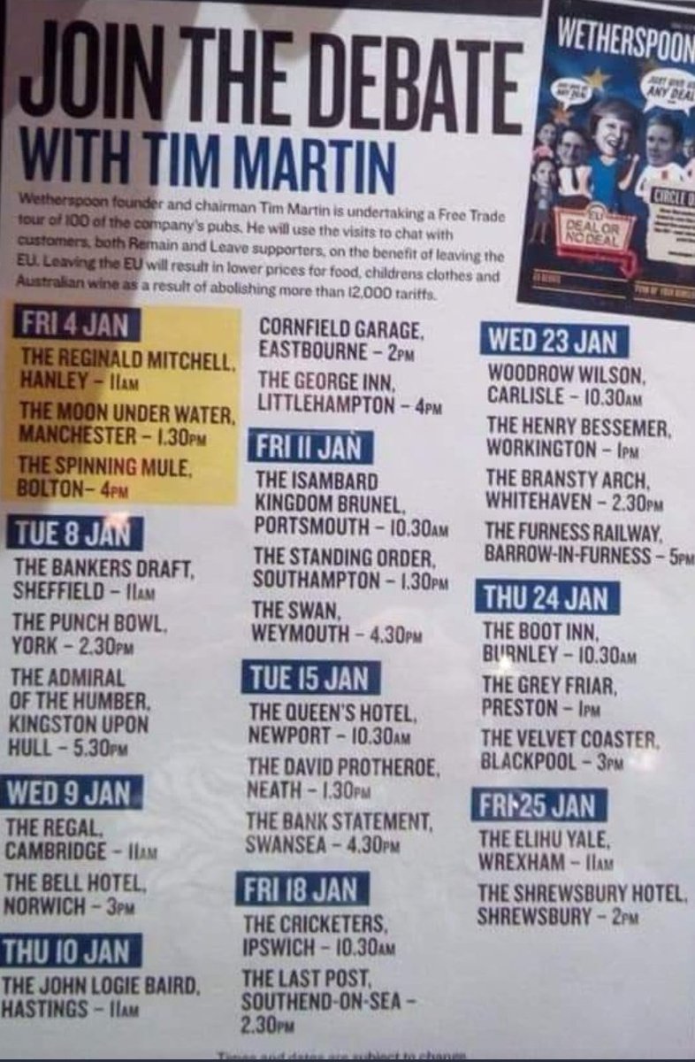#Cambridge people - Wetherspoon's boss will be at the Regal next week Weds 11am to talk about how Brexit will abolish 12,000 tariffs. I'm not a trade expert but I trust some of you are & will be there to ask him some questions.