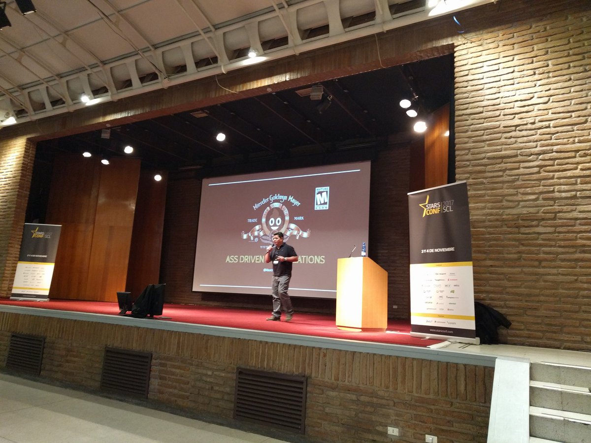 @MauroStrione en la@starsconf hablando de las "Ass Driven Organizations"#StarsConfpic.twitter.com/zq23OfNekX