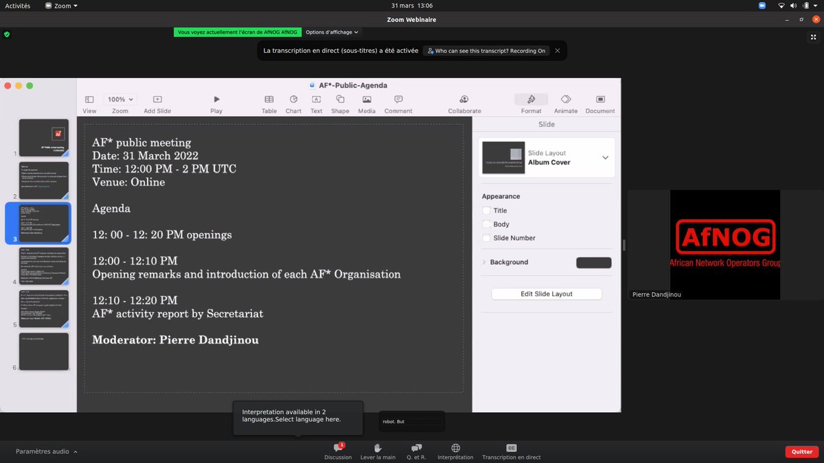#AfStar Public Meeting (#AFsPM) [1] with@AFRINIC,@AfNOGWorkshops,@AfPIF,@aftld,@Africanigf,@AfricaCERT, ... __ [1]: The AF* Public Meeting's Registration was at ;-) https://zoom.us/webinar/register/WN_MI2zxKlERVeMAixGuH8vdw …#AfNOG#cmNOGpic.twitter.com/qH9GoM6EtC