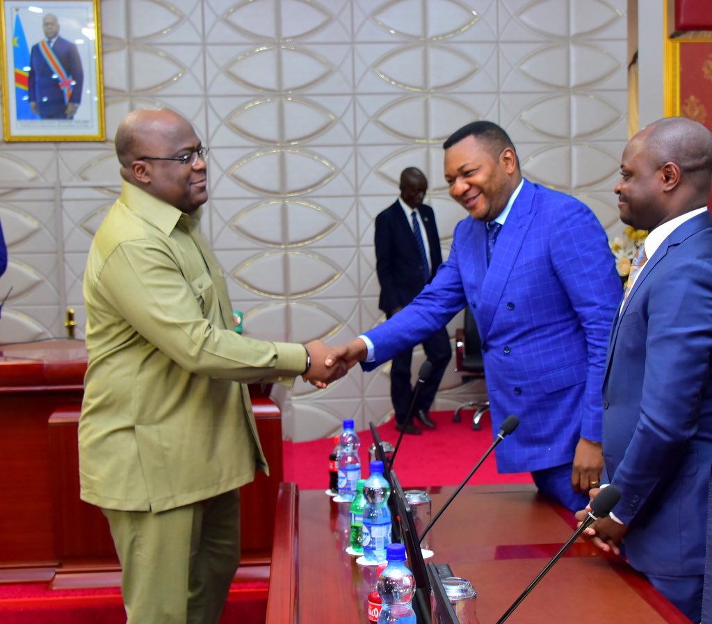 #RDC 04.02.20|#Kinshasa#CitéUA Le Chef de l’État a reçu le Champion du monde WBC des Poids Lourds-Légers Junior Ilunga Makabu accompagné de son équipe la « Team Makabu », du président de la Fédération Congolaise de Boxe, le général Luyoyo.pic.twitter.com/A4kuW7Tqxi