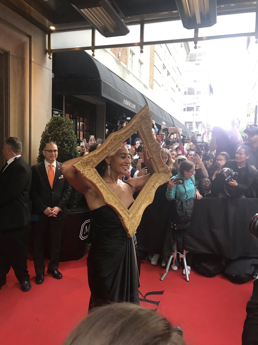 @TraceeEllisRoss’ look - People used to show up to the African American Day parade in Harlem with frames around their faces! Lorraine O’Grady’s ‘Art Is’ movement. Centering blackness as beauty. Reclaiming the narrative. BLACK CAMP!#MetCamp