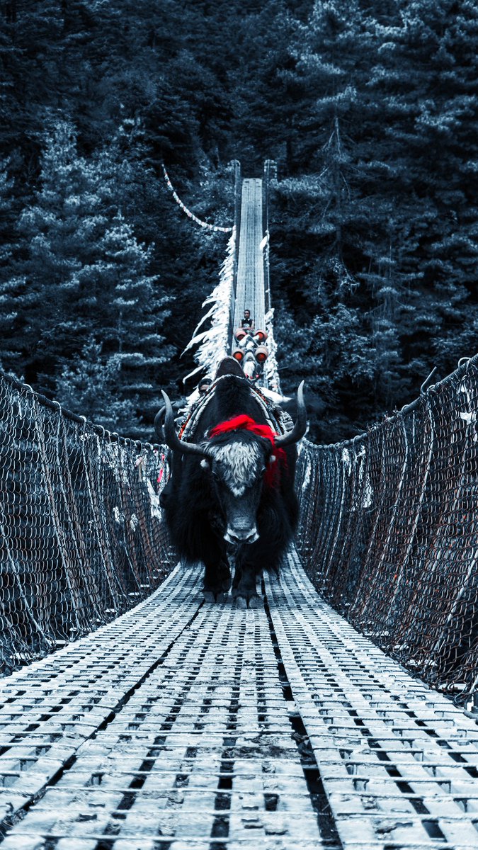 Himalaya Yak crossing the Bridge, Nepalpic.twitter.com/pVeJzIaXZU