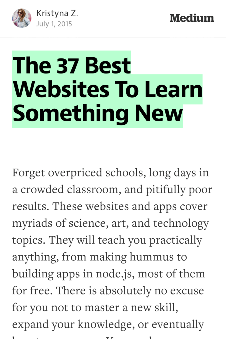 “The 37 Best Websites To Learn Something New” — @kristynazdot https://medium.com/@kristynazdot/the-37-best-websites-to-learn-something-new-895e2cb0cad4?source=tw-34474bdcc265-1436690258675#42fa--share-0-43 …pic.twitter.com/tmAjtMtR4Z