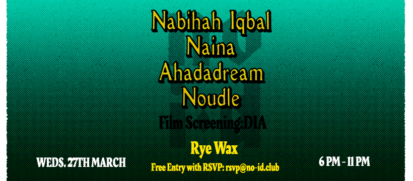 the first event is gonna be on 27 March at @Ryewax with @nabihahiqbal (DJ Set), @Naina_LDN, @noudle_ + myself. Plus a screening of a film called DIA which explores themes of mental health in Pakistan Email rsvp@no-id.club with names for free entry xpic.twitter.com/qZycLPA6dp
