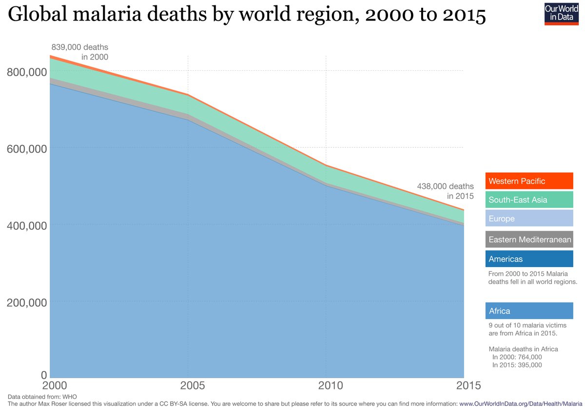 The number of people killed by malaria has been almost halved over the last 15 years. (from http://OurWorldInData.org )pic.twitter.com/QXXuwra2ae