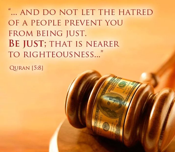 "Do not let the HATRED of a people prevent you from being JUST" ~ The Holy Quran (5:8)