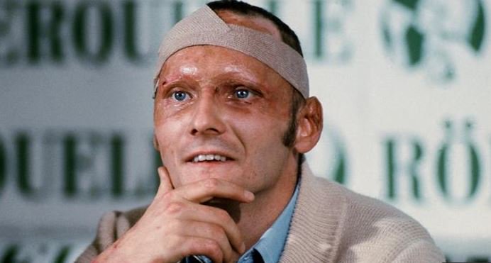 5/ eyelids (are you kidding me) in order to expedite his recovery, as he was leading the world F1 standings. A remarkable six weeks later, after holding a press conference (!), he raced again and finished fourth in the Monza Grand Prix. When he removed his helmet, his burns...pic.twitter.com/wAZaR2i4Pz