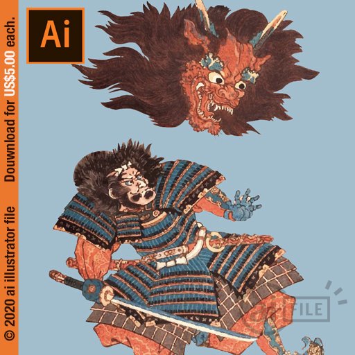 "ai files" (vector illustration graphic art design format) are US$5.00 each. Shuten Doji Japanese Ukiyo-e by Utagawa Kuniyoshi