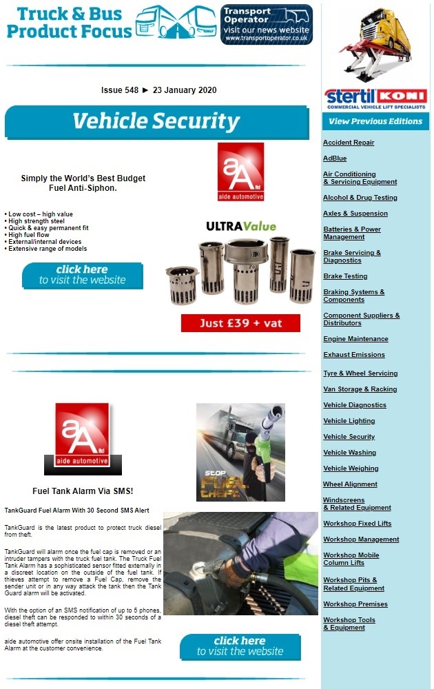 #Truck &#Bus Email Focus incorporated 2 product features from aide automotive ltd! As well as the FuelKeep#HGV Anti#Siphon, the TankGuard#Fuel Tank#Alarm featured in the email. This feature offered the solution to protecting#diesel#fuelpic.twitter.com/PN9f62VAWN