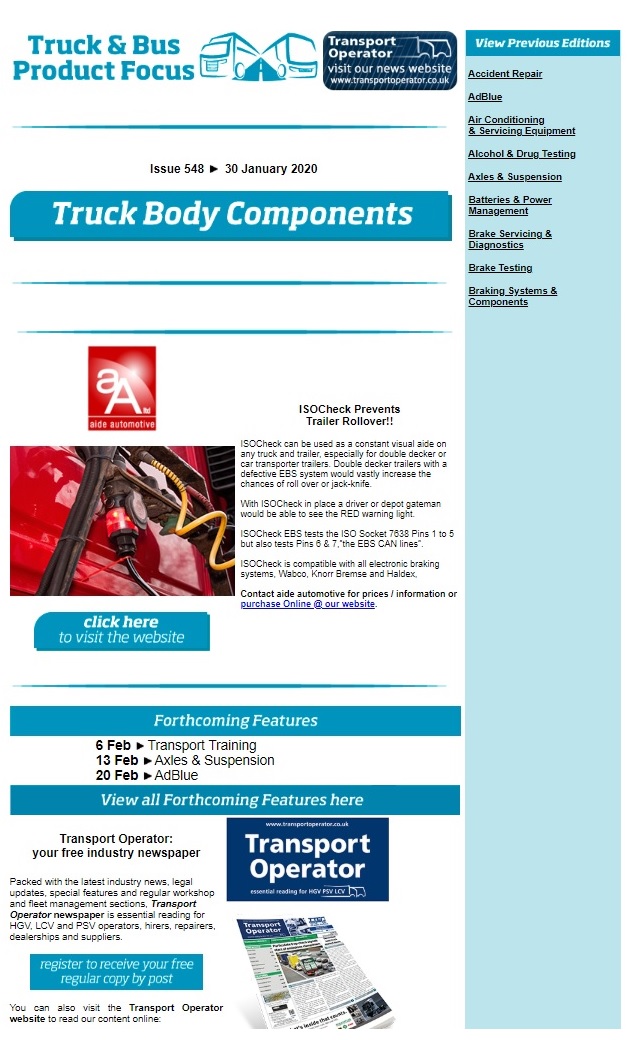 #Commercial#Vehicle Workshop is a magazine for all involved in all aspects of commercial vehicle servicing.#Trailer#Servicing & fault finding was featured in the recent July issue with an advert from aide automotive detailing the#ISOCheck. Contact aide auto on 0115 8456471pic.twitter.com/gB5a5XvKEx