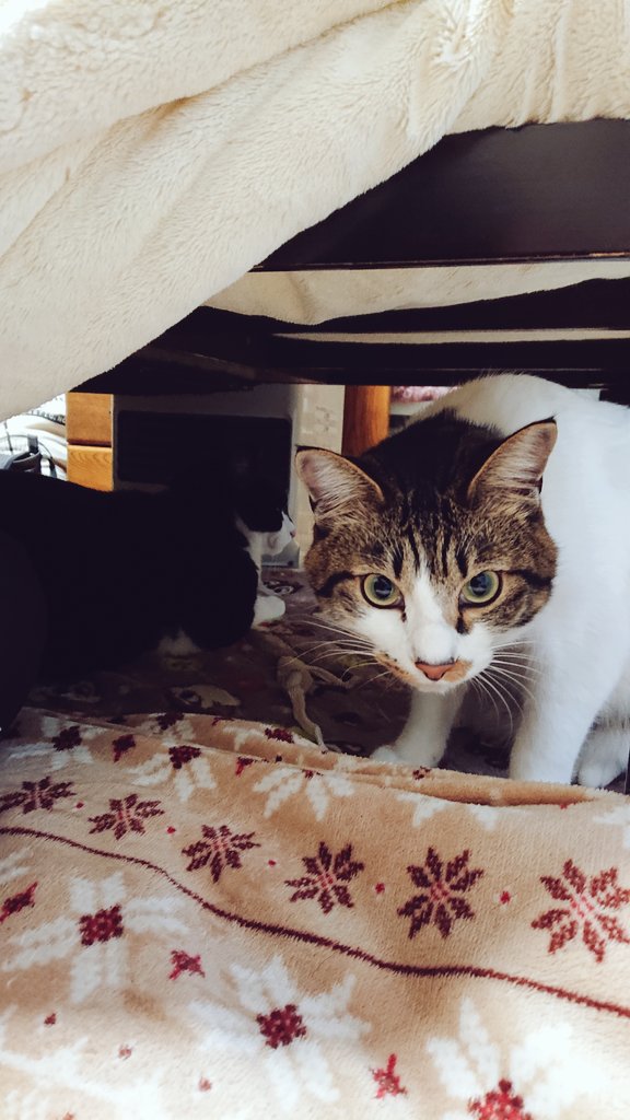 うちの愛之助と虎松はコタツの中に…虎松はまだ遊びたがってるけど…