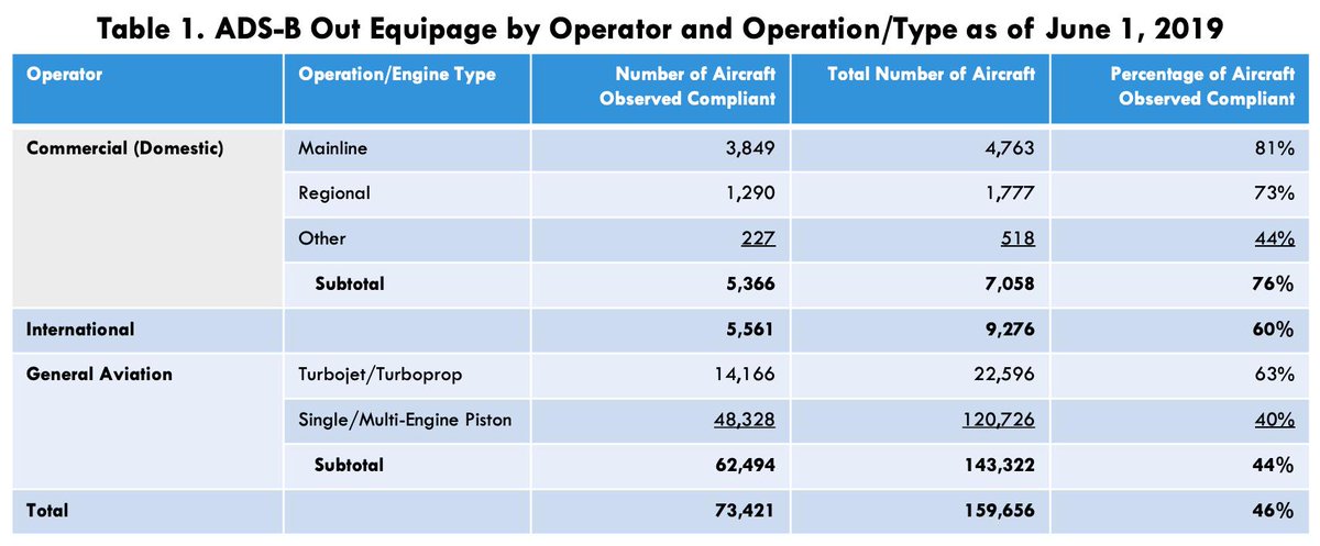 New DOT IG report to Congress shows ADS-B installation progress. This is based on aircraft operations recorded by the FAA in the National Airspace System. A reminder that this equipment is mandatory to fly in most controlled areas of the NAS starting on Jan. 1.pic.twitter.com/roow6IsyHY