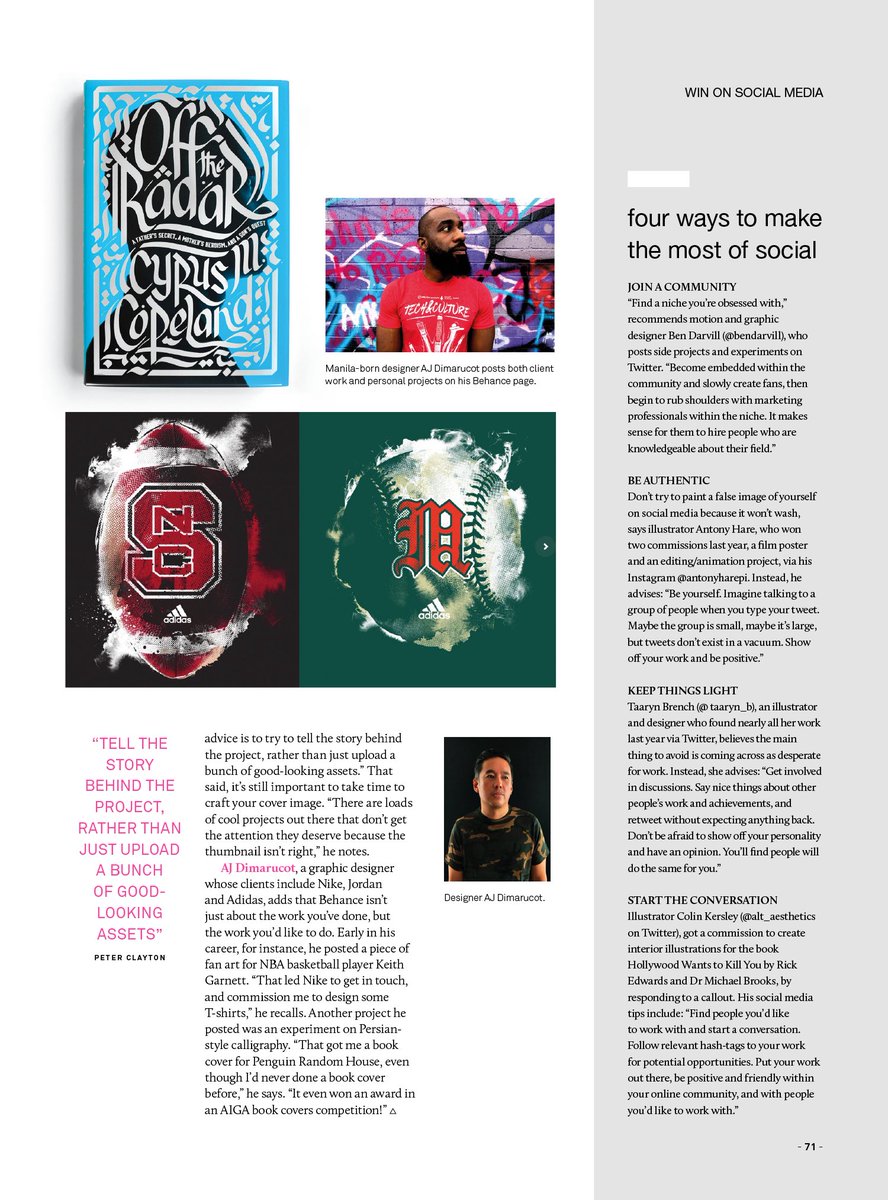 How I get work through social media. A small feature on Computer Arts Magazine. Telling a short summary of how I got to work with Nike just by posting work on Behance. Buy the issue here: https://www.myfavouritemagazines.co.uk/design/computer-arts-magazine-subscription/ …