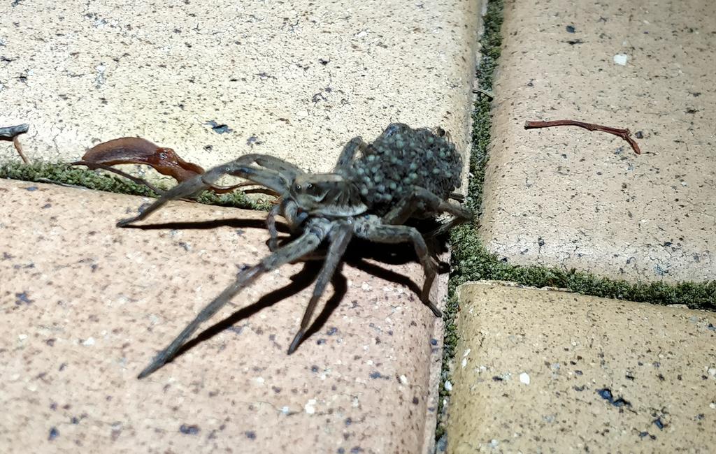 Mama huntsman covered in her babies found in my yard. So cool!pic.twitter.com/d6gQymYbdM