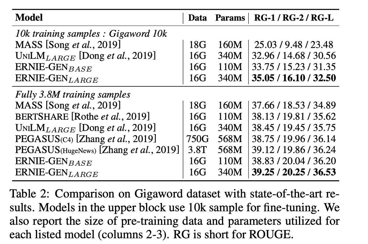 ERNIE-GEN: An Enhanced Multi-Flow Pre-training and Fine-tuning Framework for Natural Language Generation pdf: https://arxiv.org/pdf/2001.11314.pdf … abs: https://arxiv.org/abs/2001.11314 pic.twitter.com/O7LooF9zDh