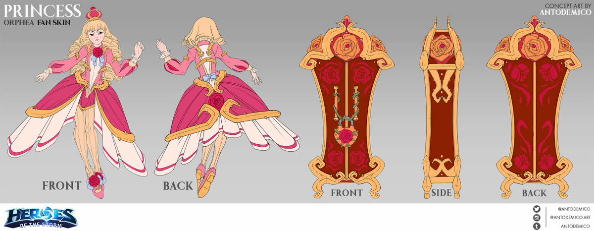 As soon as I saw Orphea I knew I had to do a skin for her. I absolutely love her design and aesthetic. Weirdly enough the first thing that I thought of was a rococo dresser as the relic on her back, the rest of the design came together out of nothing! #heroesofthestorm #hotspic.twitter.com/hZFLLcI53J