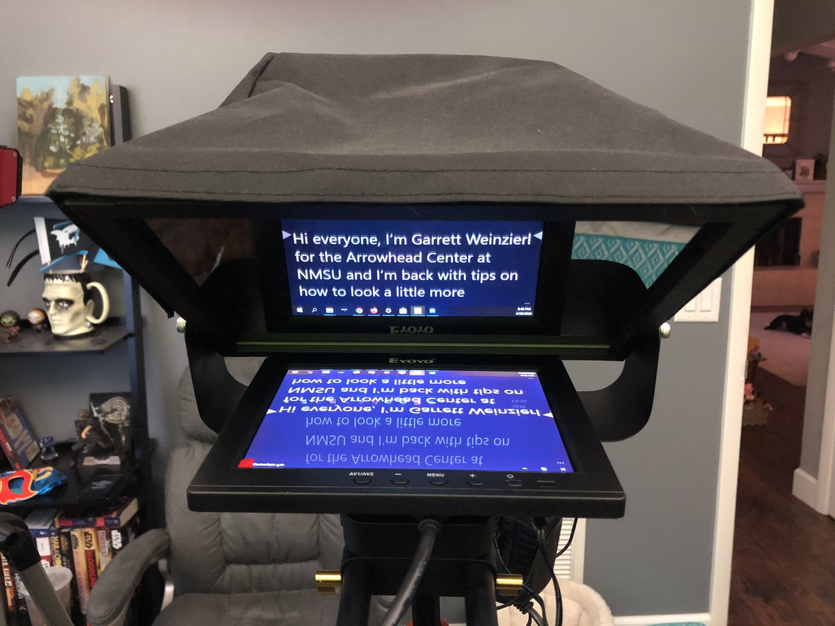 Found the world’s smallest 4:3 monitor with HDMI for the teleprompter. No more getting up to reset the iPad. Running straight off the PC. It’s weirdly cute?pic.twitter.com/FWn2ZG3aH4
