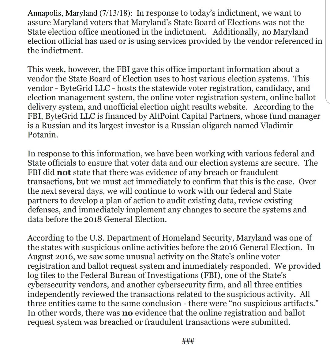 This may prove to be bigger news than today's indictments. The hosting firm for Maryland's Election Management Systems--which are used to program the VOTING MACHINES & SCANNERS THEMSELVES before each election--is hosted by a firm financed by a Russian oligarch!! 1/https://twitter.com/jemillerwbal/status/1017869938860658689 …