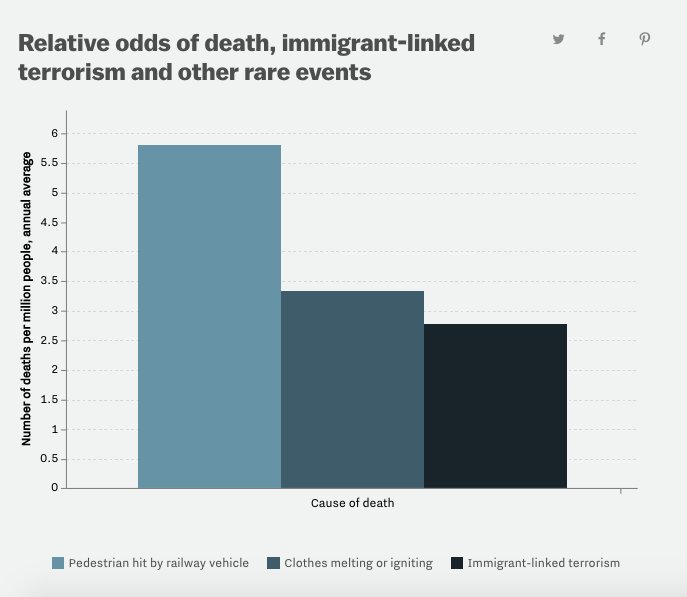 The odds of being killed by a refugee terrorist? One in 3.6 billion. http://bit.ly/2cmWgJ0 pic.twitter.com/yucssxHRGP