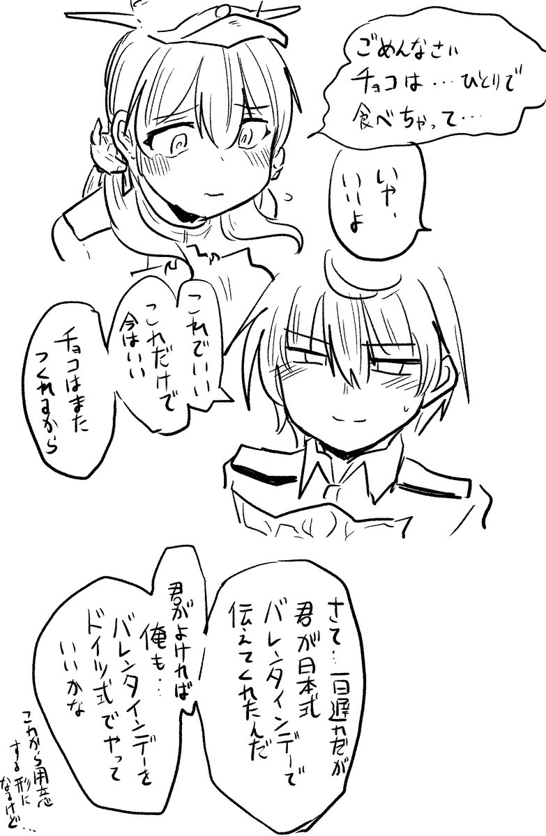 ライバルが増えすぎてチョコレートを渡せずに部屋に持ち帰って独り食べながら「あ、このチョコおいしい…自信作」とか感想を述べるプリンツオイゲンちゃんを幻視して描いたのは精神(こころ)がもう息苦しかったから続け・・・pic.twitter.com/2WIelWUttt