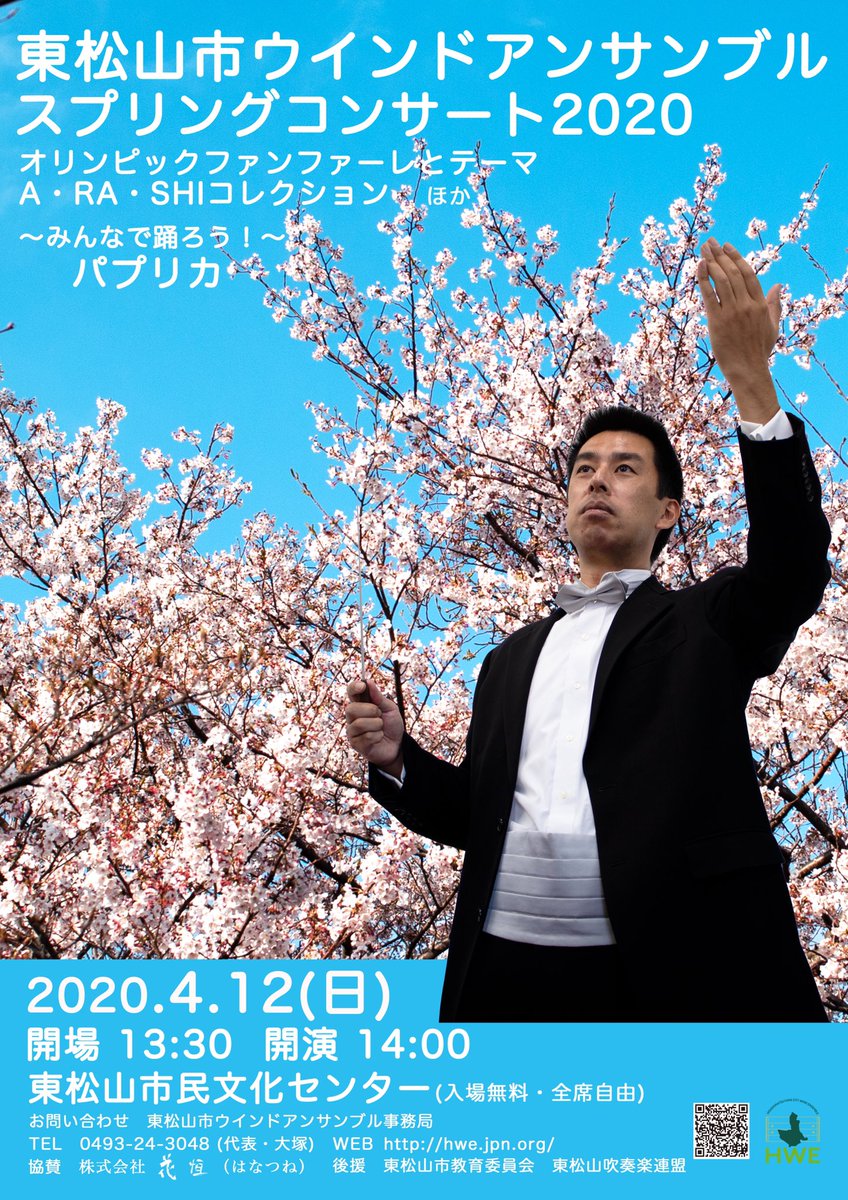 本日解禁ー!!スプリングコンサートのチラシ、ポスター完成!!我らが椎名大先生です!カッコイー!! 2020年4月12日(日) スプリングコンサート 開場 13:30 開演 14:00 東松山市民文化センターにて!! お待ちしてまーす!