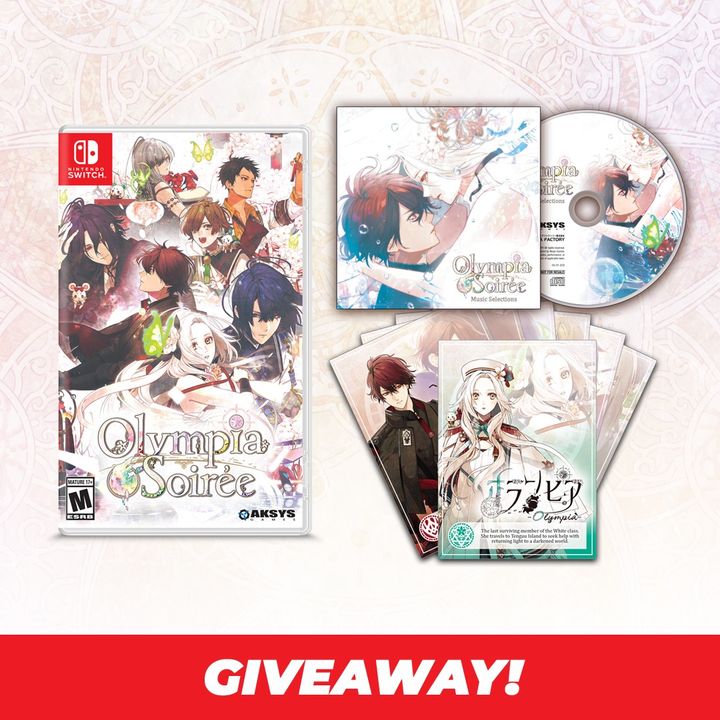 #GleamGiveaway for our upcoming release,#OlympiaSoirée! Entries are open and end on 09/08 at 11:59pm, winners will be announced on our#otomegames stream on http://twitch.tv/aksysgames ! Enter on FB: http://bit.ly/3jiDkLa Or online: http://bit.ly/3BiL2uTys pic.twitter.com/7Rz8hAcnYn