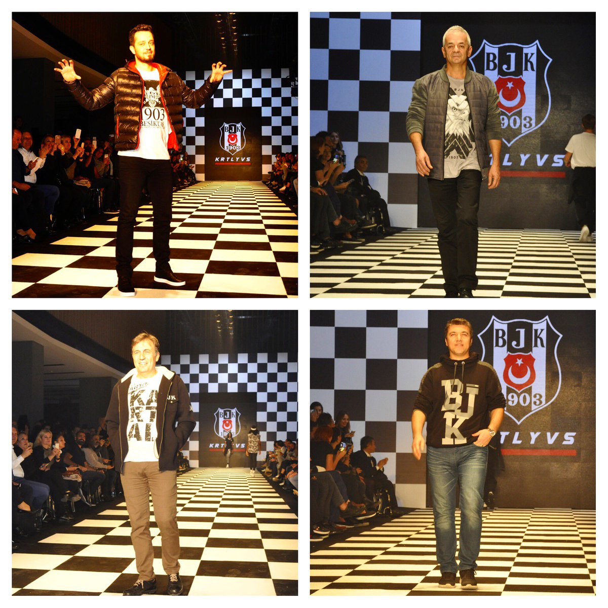 #KartalYuvası defilesinde ünlü Beşiktaşlılar podyumda lisanslı ürünlerimizi tanıttı.#MuratBoz#ZaferAlgöz#ErdoğanAktaş#İsmailKüçükkayapic.twitter.com/6lauMBF4x6