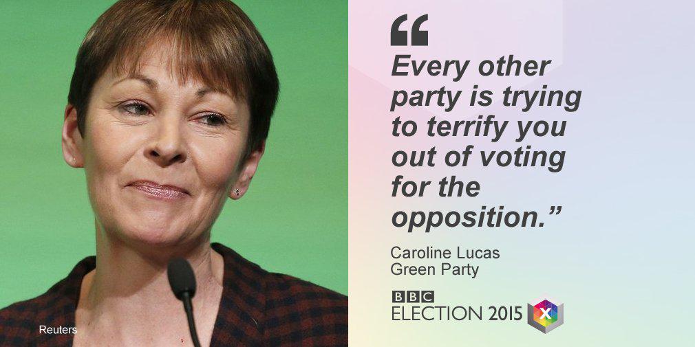 @CarolineLucas says smaller parties offer voters a chance to "vote for what they believe in"#GE2015pic.twitter.com/FvYnZxH8d7