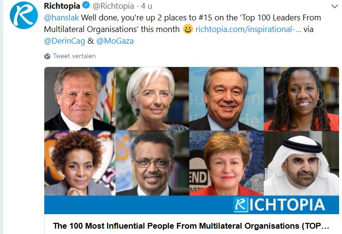 I am very glad that i am considered to be one of the #Influencers in multilateral organisations! Working hard on accelerating sustainable development via http://Glesi.org  it all starts with closing the collaboration gap and sustainability education on every single schoolpic.twitter.com/aBHWg04SBy