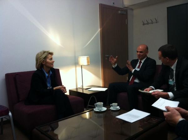 Avec la Ministre allemande des affaires sociales U. von der Leyen. Prochainement à Berne pour poursuivre le dialogue.pic.twitter.com/jDfih83c