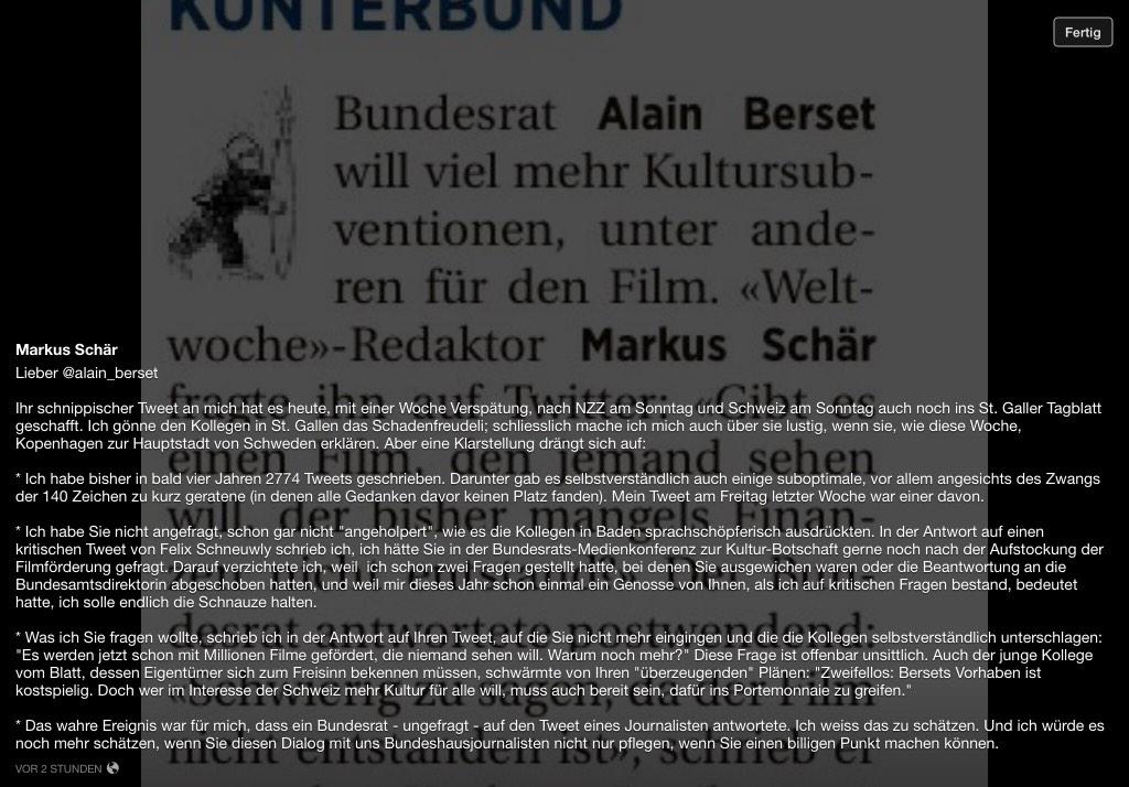 @alain_berset Die Logik geht andersrum: Es werden jetzt schon mit Millionen Filme gefördert, die niemand sehen will. Warum noch mehr?Thanks. Twitter will use this to make your timeline better. UndoUndo