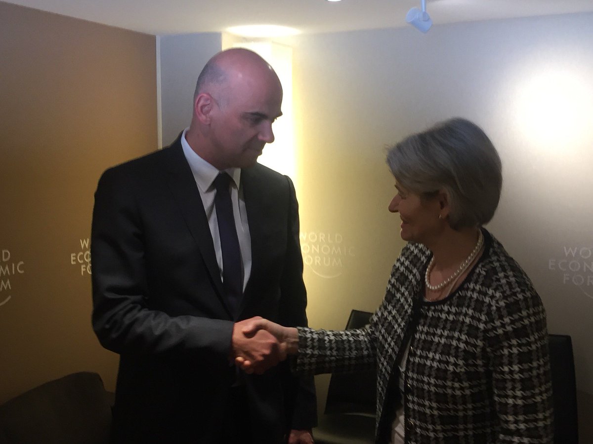 Échangé avec la dir. de l' #UNESCO @IrinaBokova sur la protection du patrimoine culturel #WEF2017pic.twitter.com/trAfefNpFM