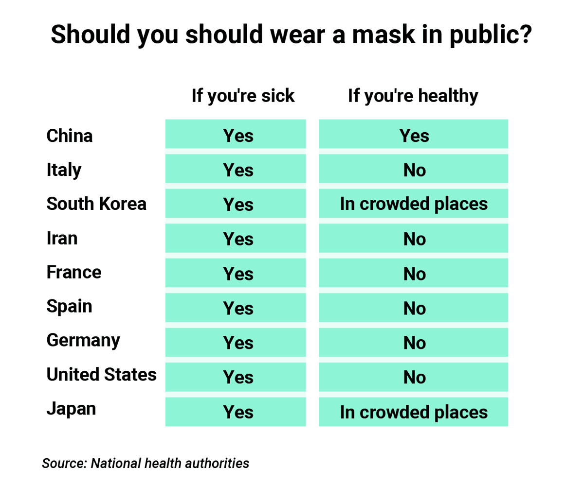 We made this table on March 10 to compare the mask policy of the top 9 countries hit by the coronavirus Coronavirus: health researchers urge global authorities to consider broadening use of face masks https://www.inkstonenews.com/health/coronavirus-health-researchers-urge-global-authorities-consider-broadening-use-face-masks/article/3074453 …pic.twitter.com/9jwPsYWfpA