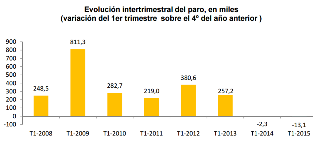 #paro baja en 13.100 personas, el mayor descenso en un primer trimestre desde 2005 http://bit.ly/1yVeWV5 pic.twitter.com/qNN9YfsqeV