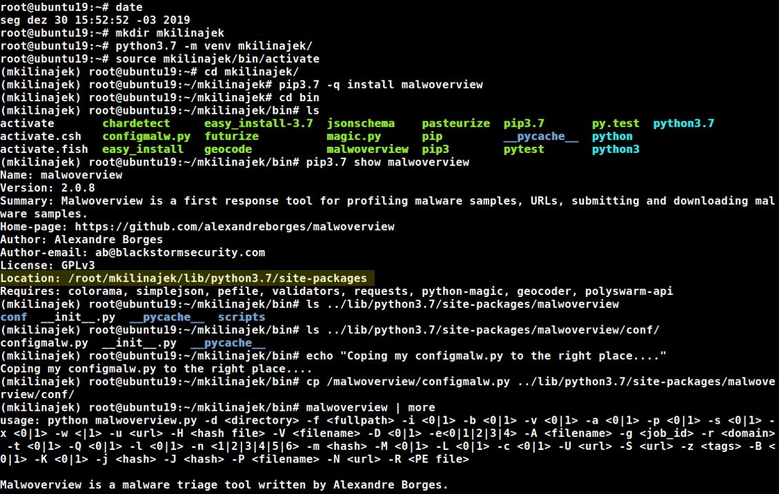 @kilijanek there isn't any problem with the malwoverview installation. When you installed it in a virtual environment, a copy of files are placed into the same directory, but the remaining Python's structures are kept. Please, if it's possible, so follow my step-by-step below.pic.twitter.com/pTUDolpjtE