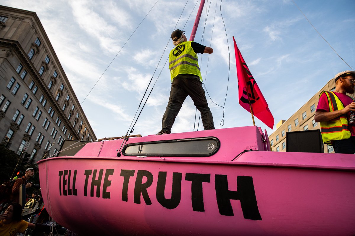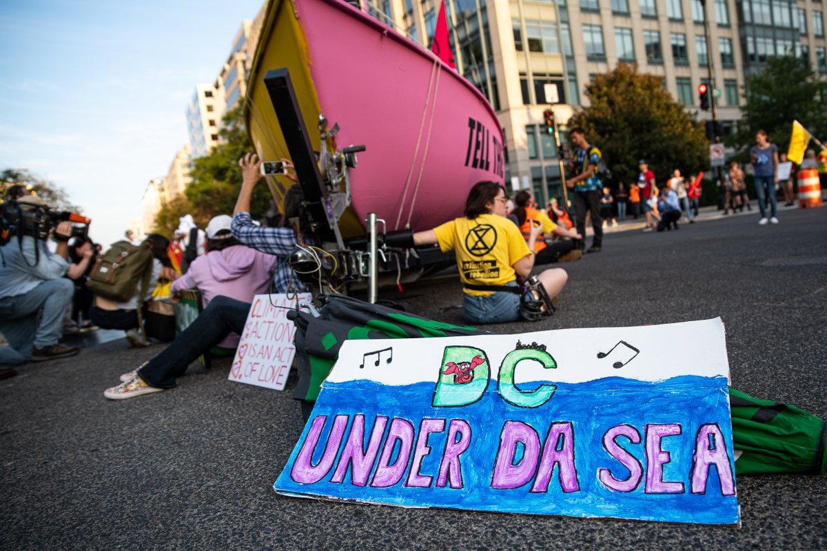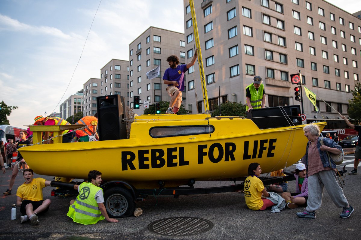 I’m in downtown DC where climate activists with Extinction Rebellion have blocked the intersection of K and 16th streets with a big sailboat that says “rebel for life.” @WTOP @WTOPtraffic #ShutDownDCpic.twitter.com/NWIO1aRvM3