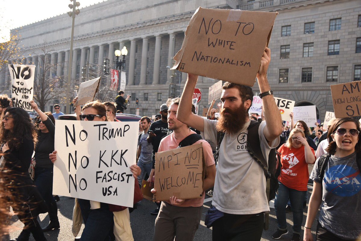 Outside the doors to the #NPI meeting. Chants: "Your time will come, Nazi scum!"pic.twitter.com/v70nhOXmae