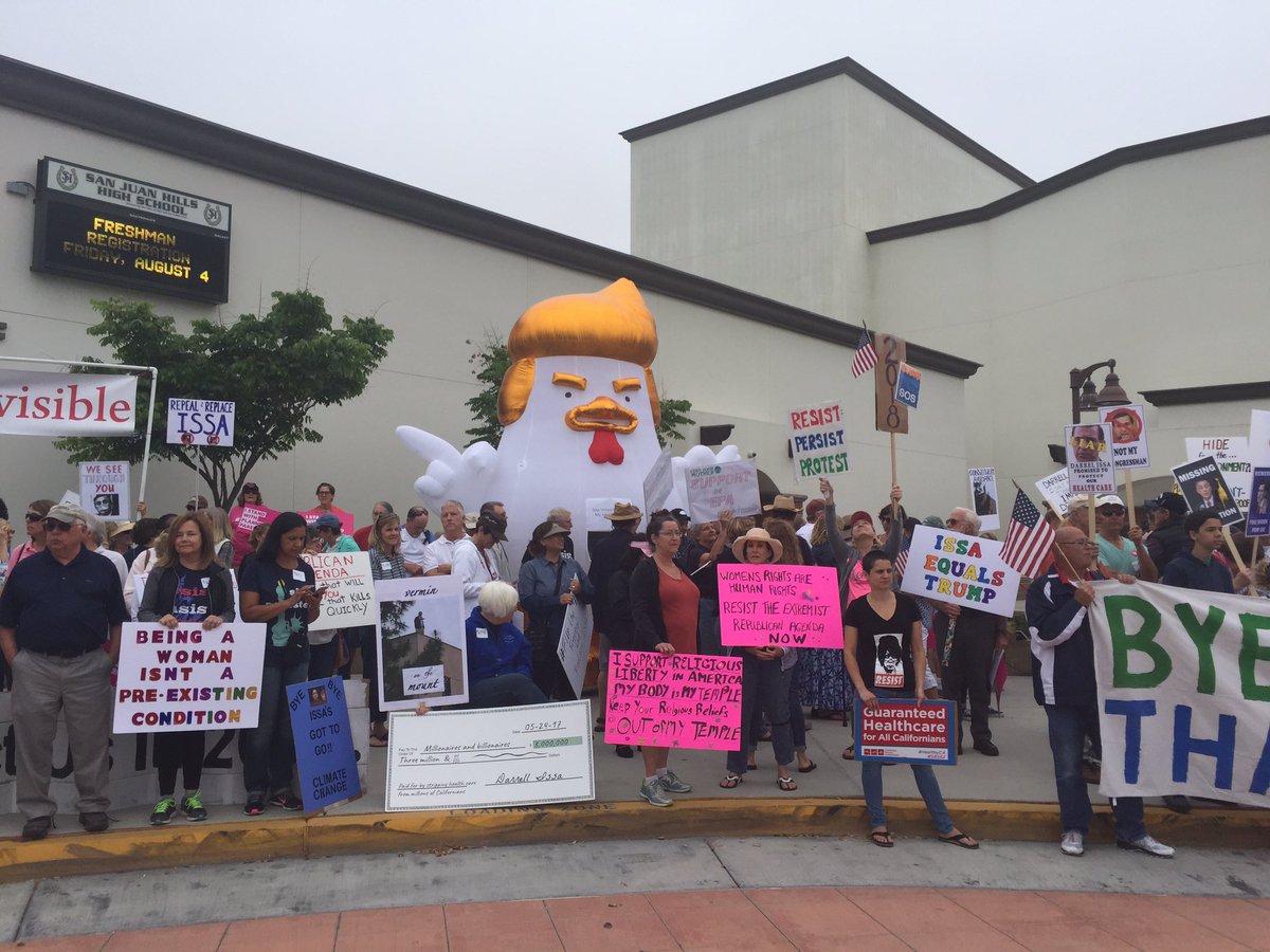 @DarrellIssa right now outside townhall!#NoAHCA#Trumprussia#russiagate https://secure.actblue.com/donate/flip_the_49th …pic.twitter.com/T0AVhqEfuy