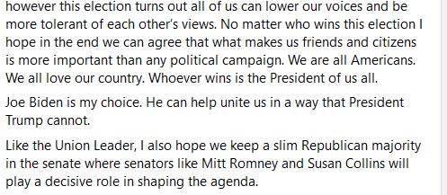@JoeBiden receives key NH endorsement from 8 year NH GOP Chair, and longtime John McCain friend, Steve Duprey who says: "VP Biden has a long history of appealing to what unites us....We need that kind of leadership now."#nhpolitics#Biden2020https://twitter.com/jdistaso/status/1323015006137573377 …
